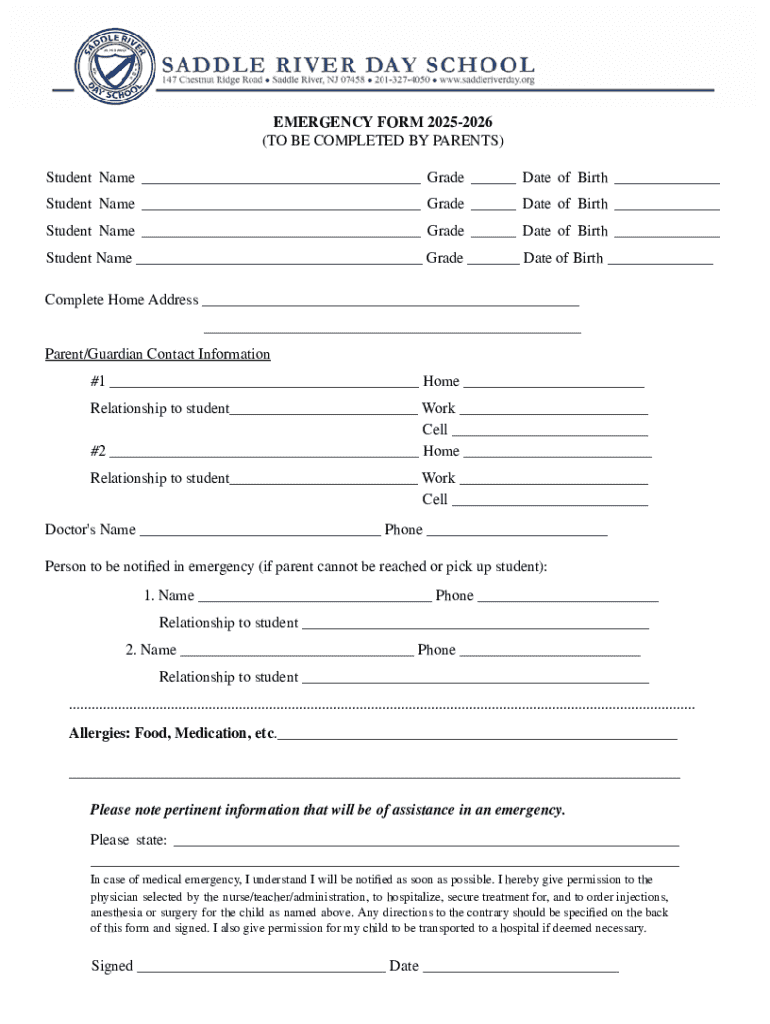 Fill out your emergency form 2025-2026 online with pdfFiller!