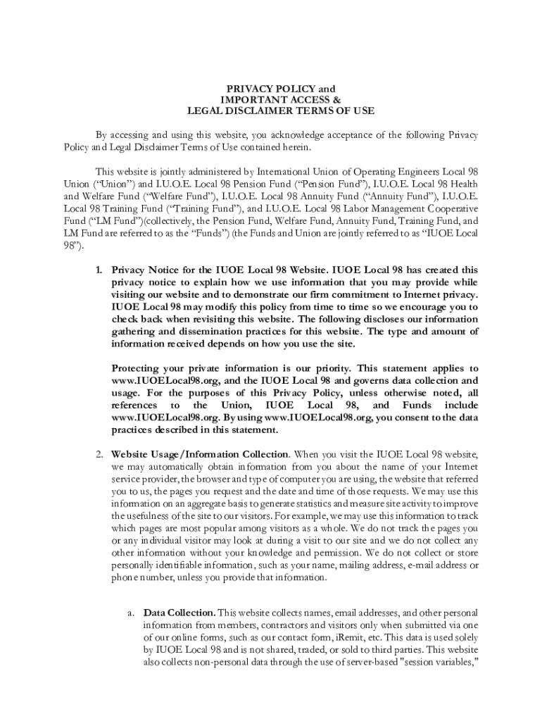 Get the free Privacy Policy and Important Access & Legal Disclaimer Terms of Use