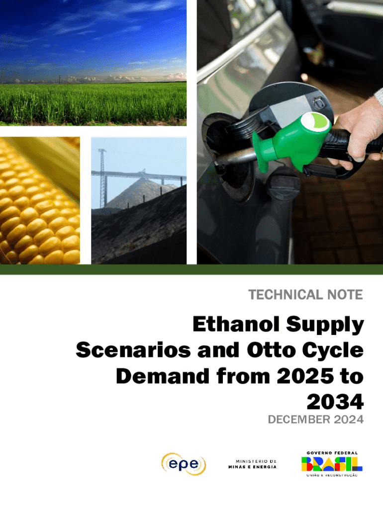 This technical note presents supply scenarios for ethanol production from sugarcane and corn, implications for Otto-cycle fuel demand, and the national balance of gasoline in Brazil. It analyzes the