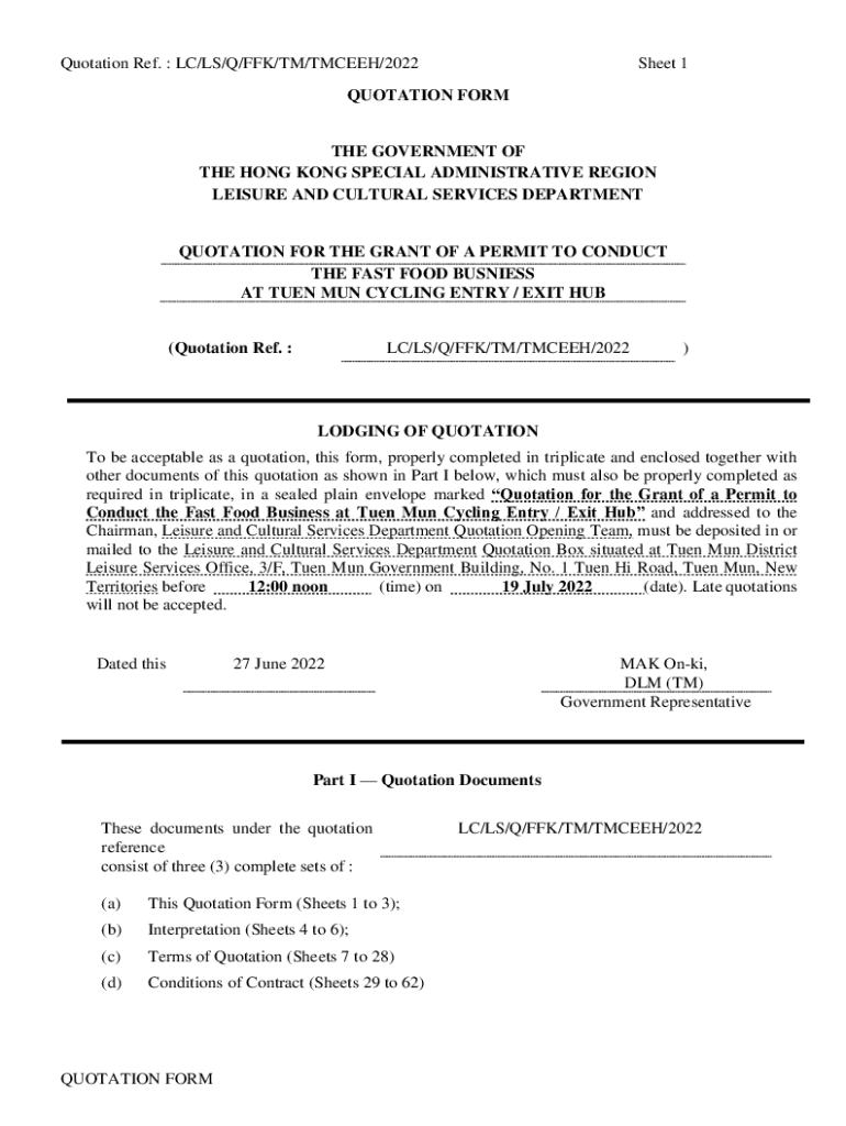 Get the free Quotation Form