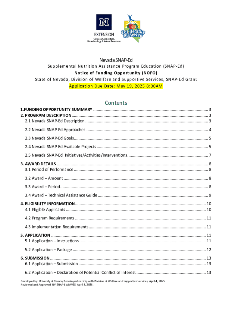 A comprehensive guide to the Nevada SNAP-Ed NOFO form