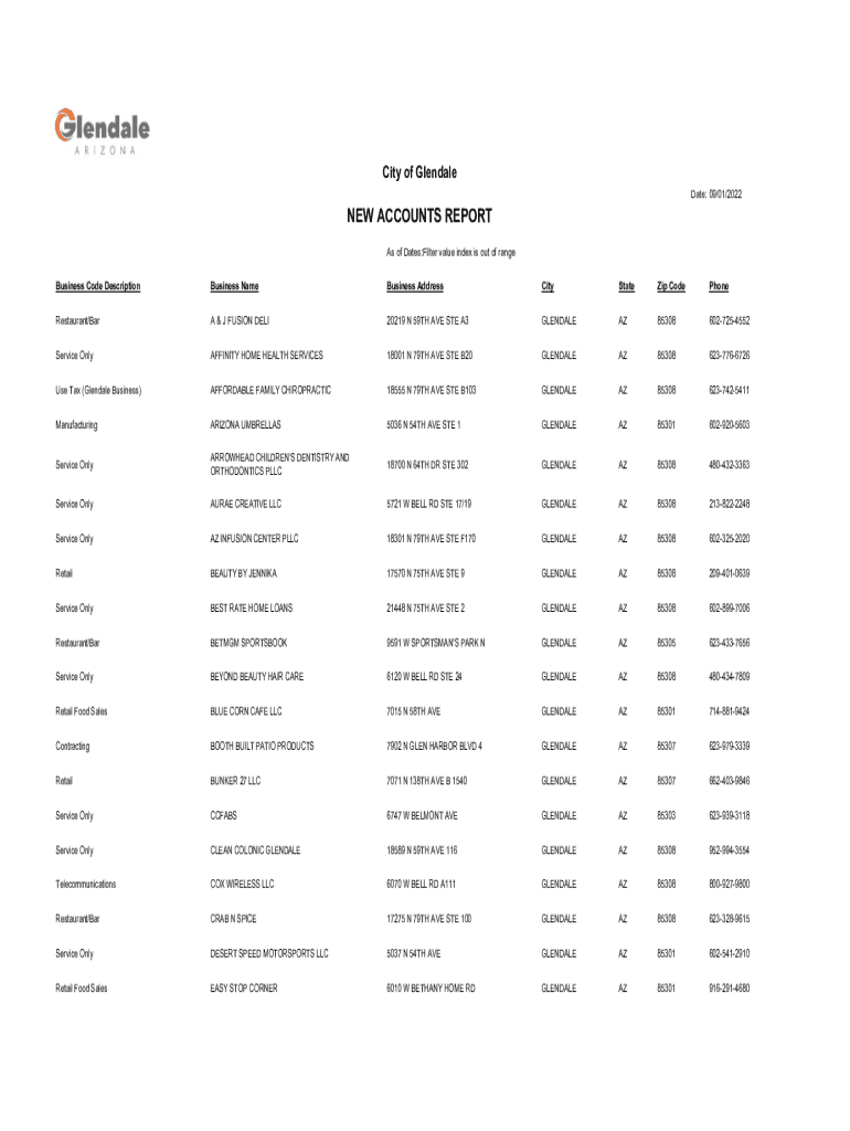 Get the free New Accounts Report