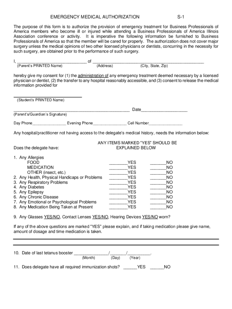 Get the free Emergency Medical Authorization