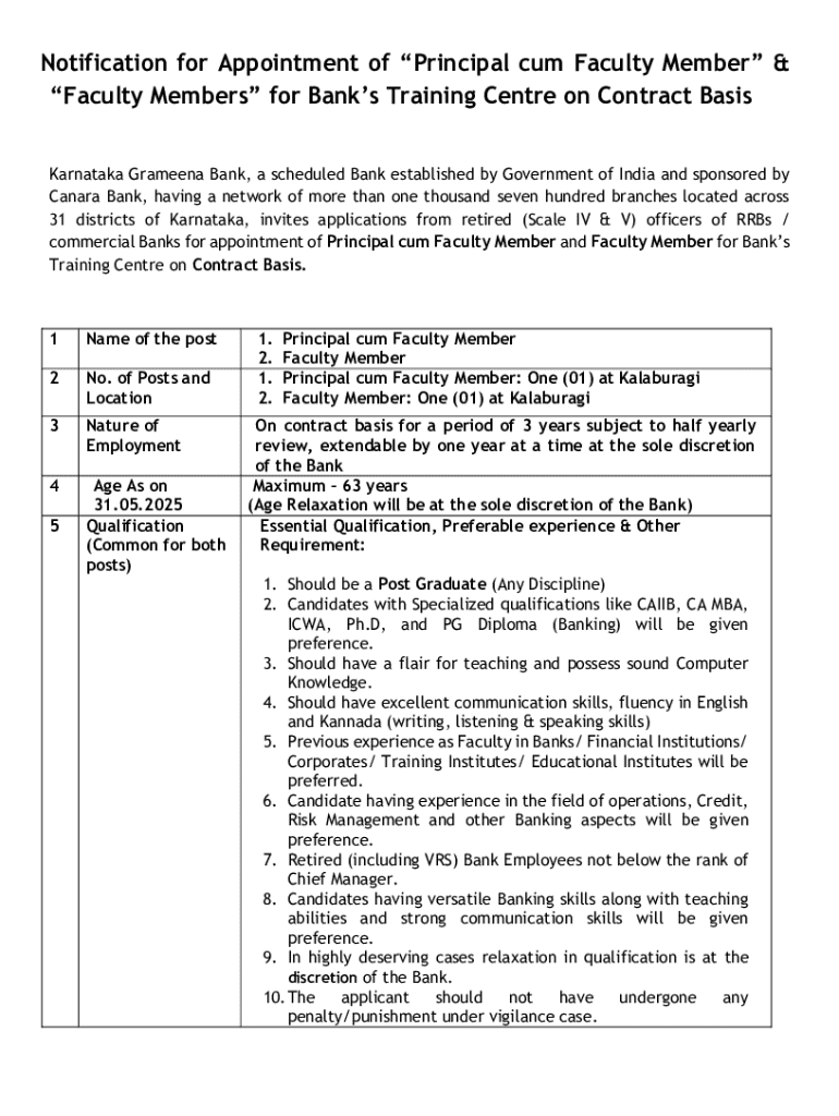 Get the free Notification for Appointment of Principal Cum Faculty Member & Faculty Members for B...