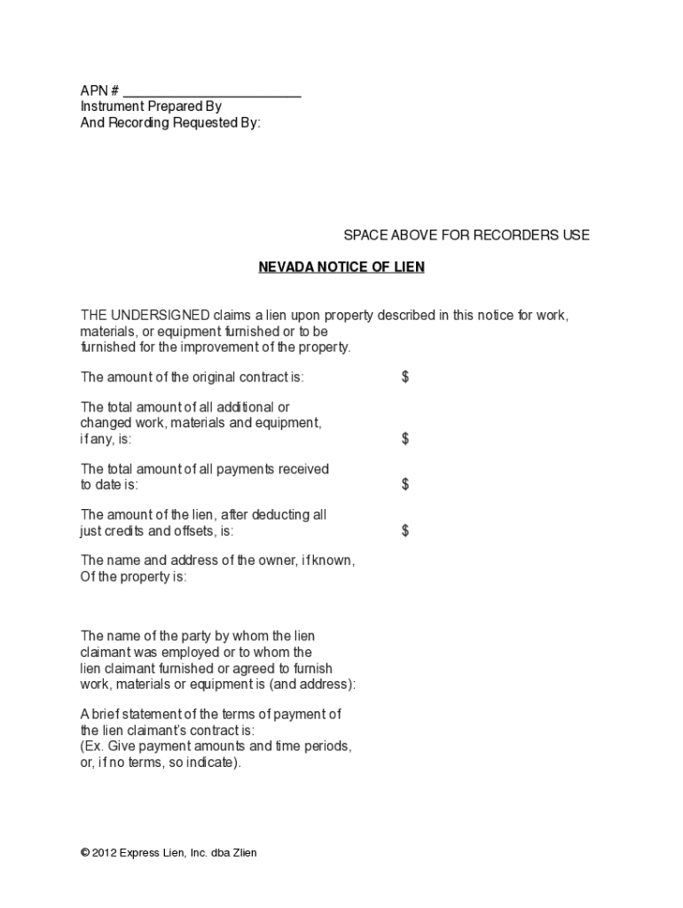 The Nevada Mechanics’ and Materialmen’s Lien Law provides the legal foundation for filing notices of lien in the state. Understanding this law is essential for contractors and suppliers to ensure they are operating within the legal framework. Incorrectly filed liens can lead to significant repercussions, including potential legal disputes or invalidation of the lien.
