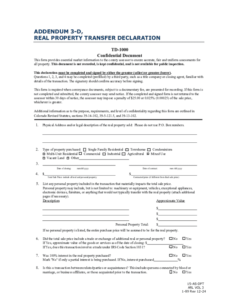 Get the free Addendum 3-d, Real Property Transfer Declaration