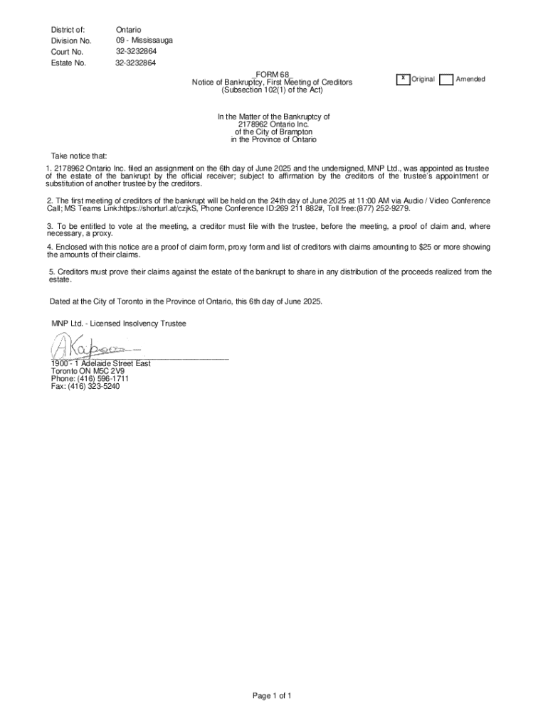 Get the free Notice of Bankruptcy, First Meeting of Creditors