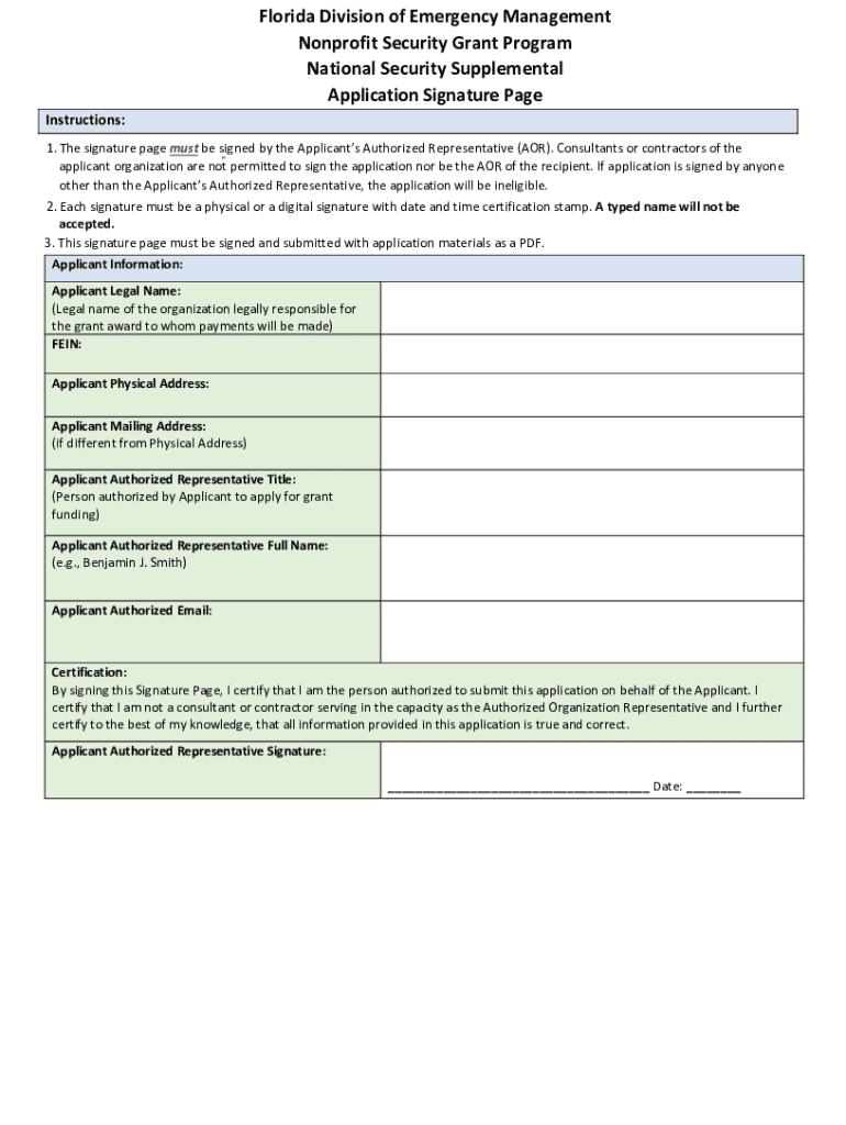 Get the free Nonprofit Security Grant Program Application Signature Page
