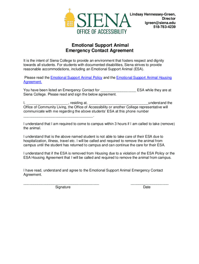 Moreover, ESA owners frequently ask whether an emergency form is mandatory. While not a legal requirement, having one can significantly alleviate stress and uncertainty during distressing situations.