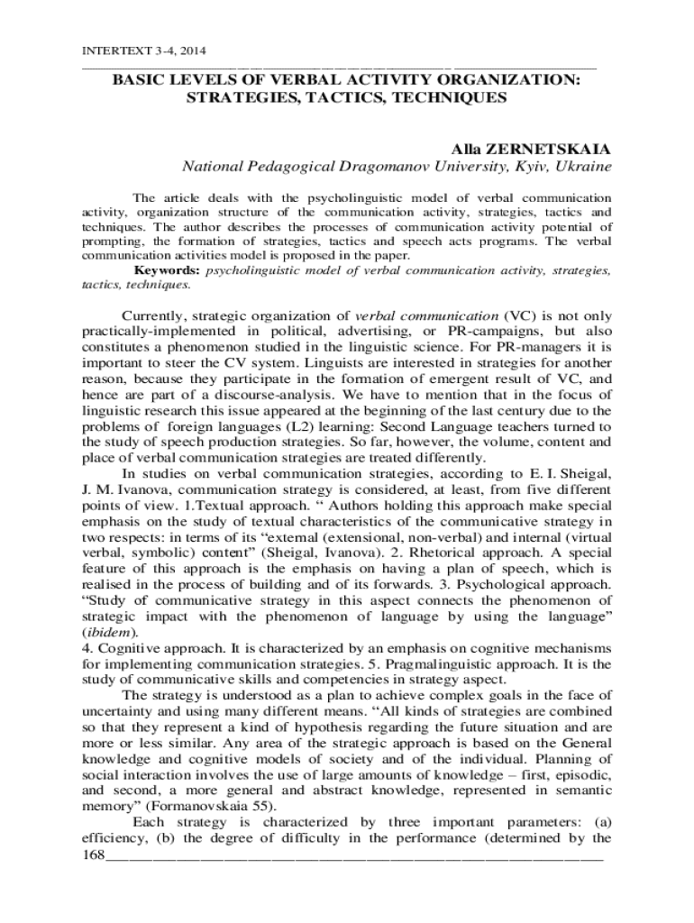 The article addresses the psycholinguistic model of verbal communication activity and its organizational structure, focusing on strategies, tactics, and techniques, and proposing a model for verbal