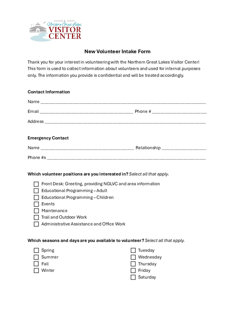 Get the free New Volunteer Intake Form