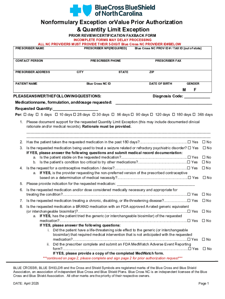 Get the free Nonformulary Exception or Value Prior Authorization & Quantity Limit Exception Prior...