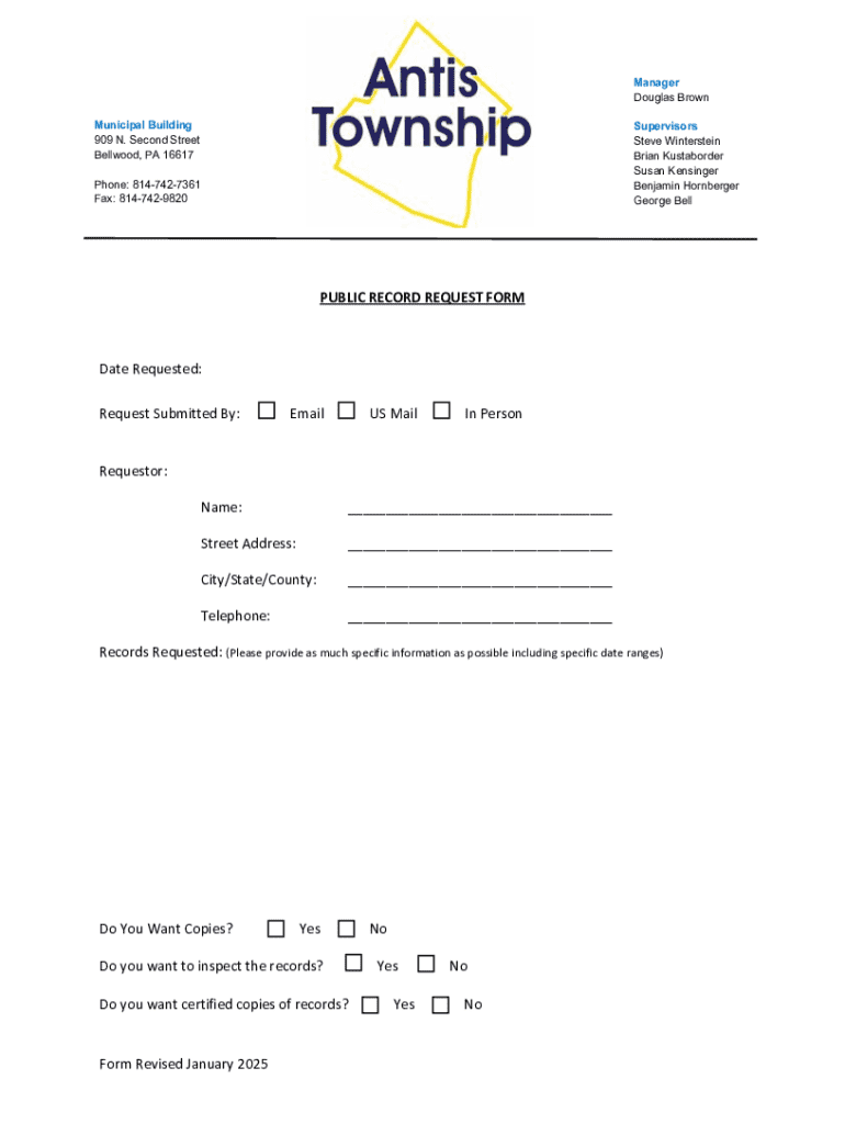 Get the free Public Record Request Form
