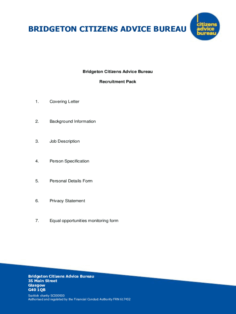 Get the free Bridgeton Citizens Advice Bureau Recruitment Pack