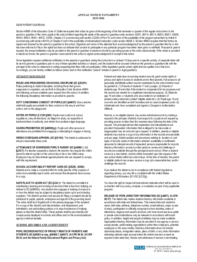 The annual notice to parents form serves as a vital communication tool between educational institutions and families. It is designed to inform parents about important policies, changes, and information that impacts their children’s education. The form is essential not only for compliance with educational regulations but also for fostering a positive relationship between schools and parents.