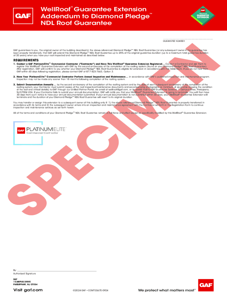 Get the free Wellroof Guarantee Extension