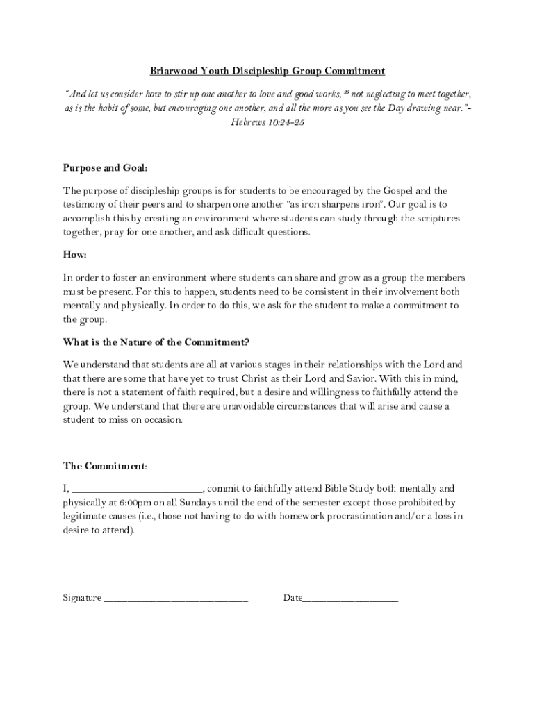 Get the free Briarwood Youth Discipleship Group Commitment