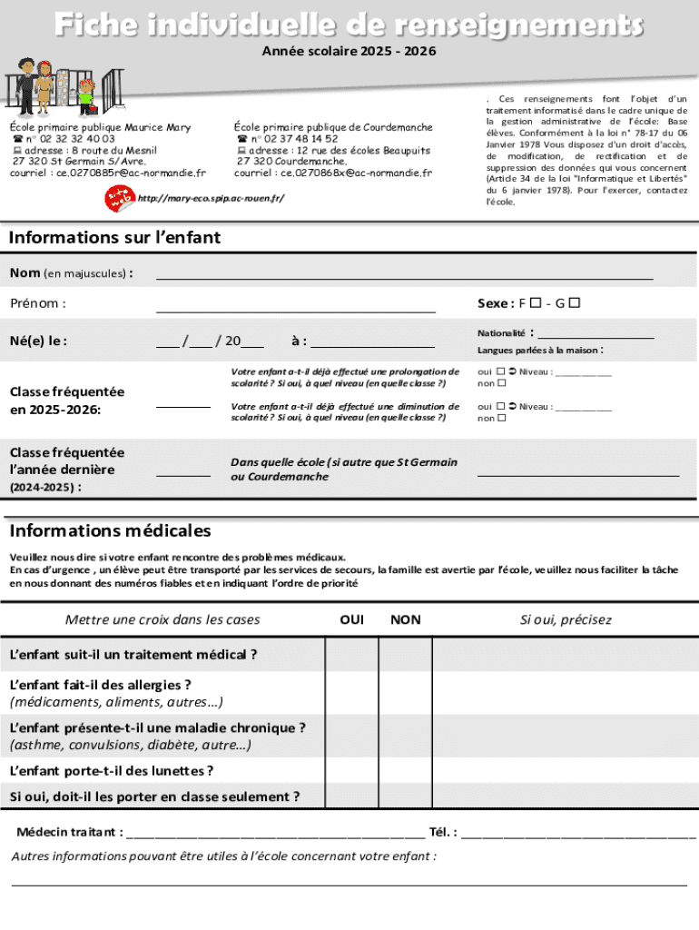 Obtenir le gratuit Fiche Individuelle De Renseignements