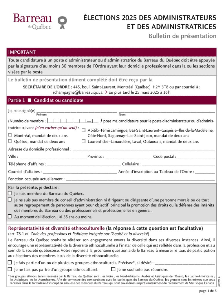 Obtenir le gratuit Bulletin de prsentation d'un candidatl'lection d'un ...
