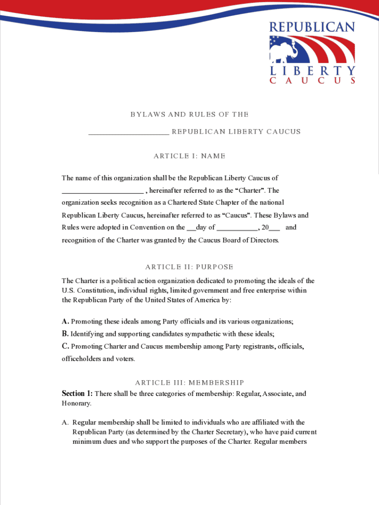 Get the free Bylaws and Rules of the Republican Liberty Caucus