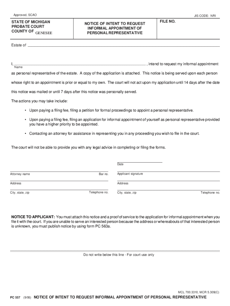 Get the free Notice of Intent to Request Informal Appointment of Personal Representative