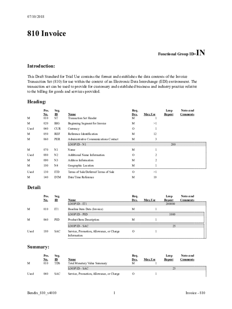 Carriers and freight service providers who are involved in truck freight operations and need to report their activities in accordance with regulatory requirements are mandated to file the bendix_810_v4010.