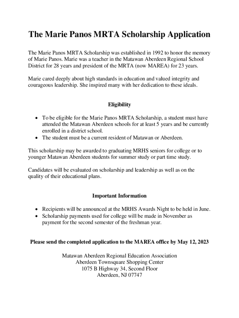 A comprehensive guide to the Marie Panos Mrta Scholarship form