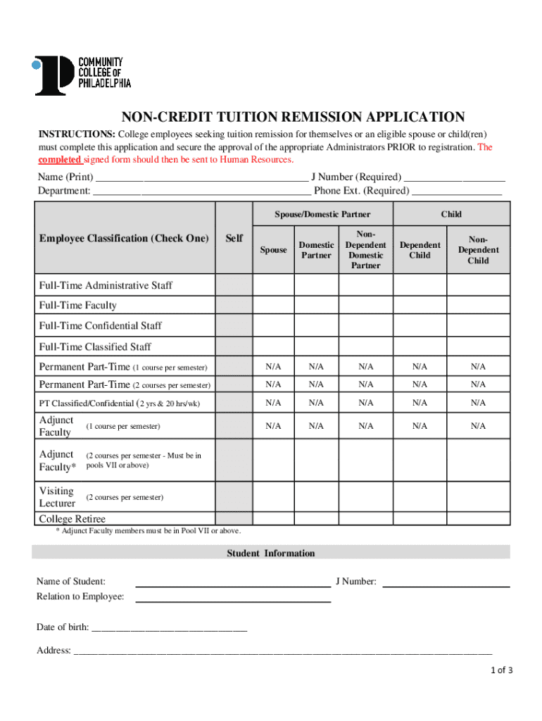Get the free Non-credit Tuition Remission Application