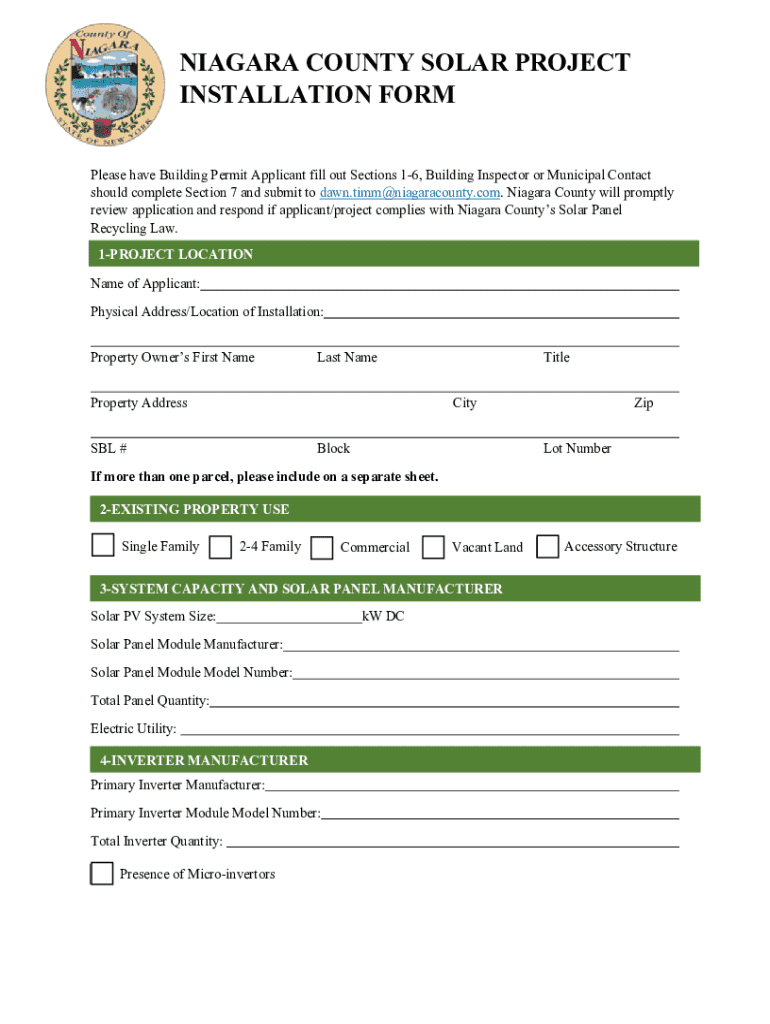Understanding the different sections of the Niagara County Solar Project Form is essential for successful completion. This form consists of several key sections: