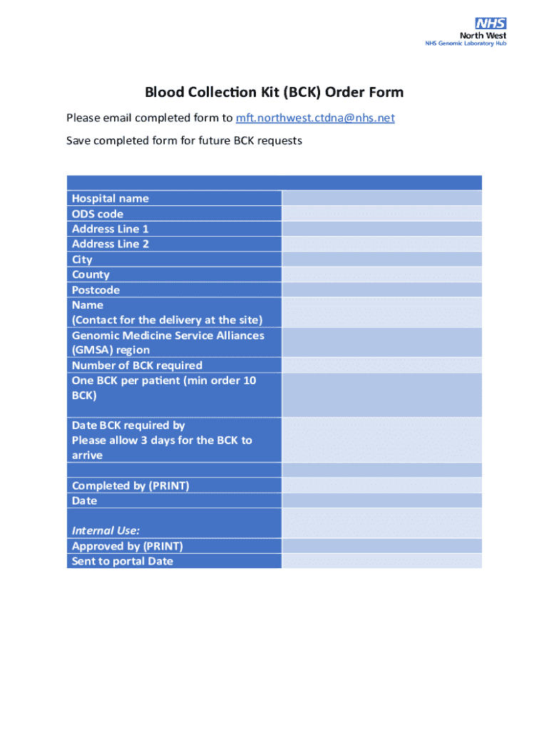Filling out the blood collection kit BCK form accurately is vital for seamless laboratory processing. Here’s a step-by-step guide to completing the form: