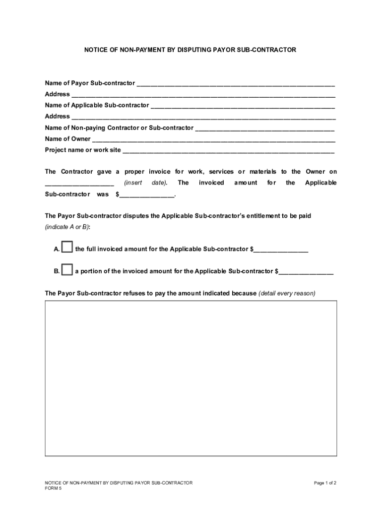 Get the free Notice of Non-payment by Disputing Payor Sub-contractor