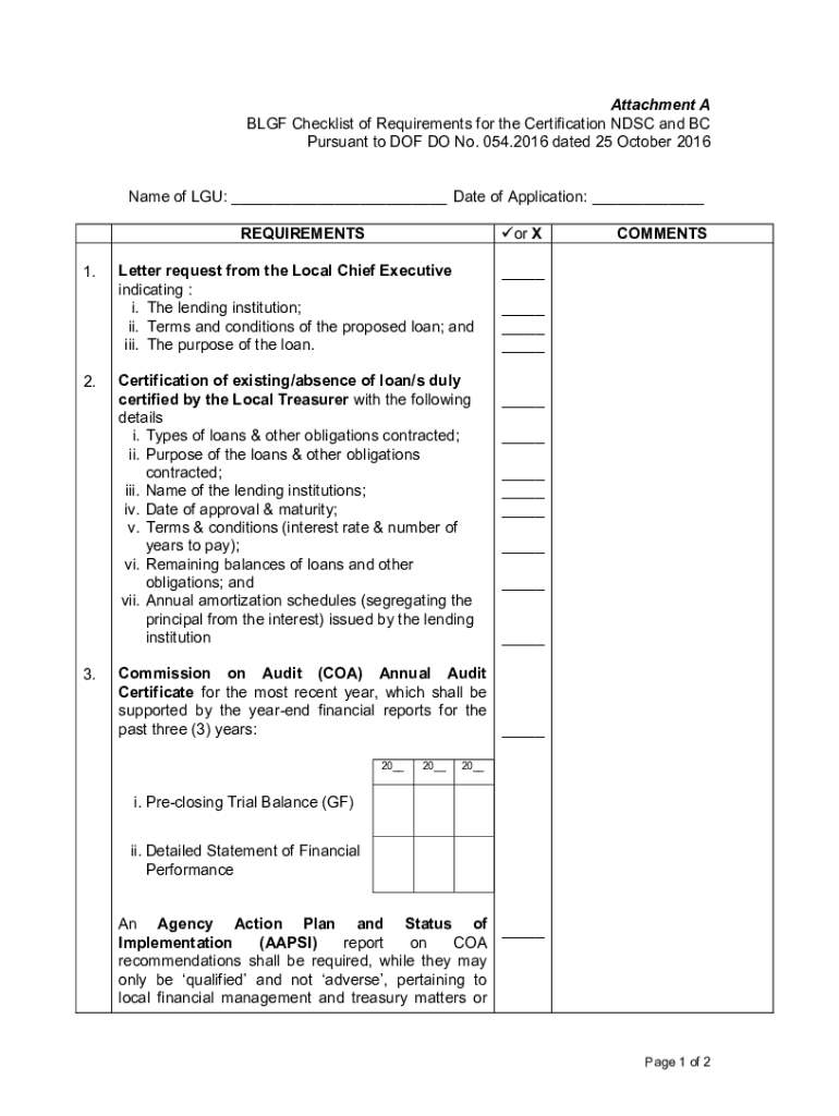 Get the free Blgf Checklist of Requirements for the Certification Ndsc and Bc