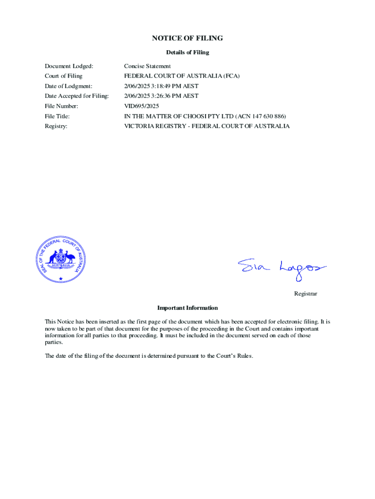 Get the free Notice of Filing