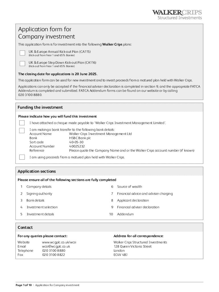 Get the free Application Form for Company Investment