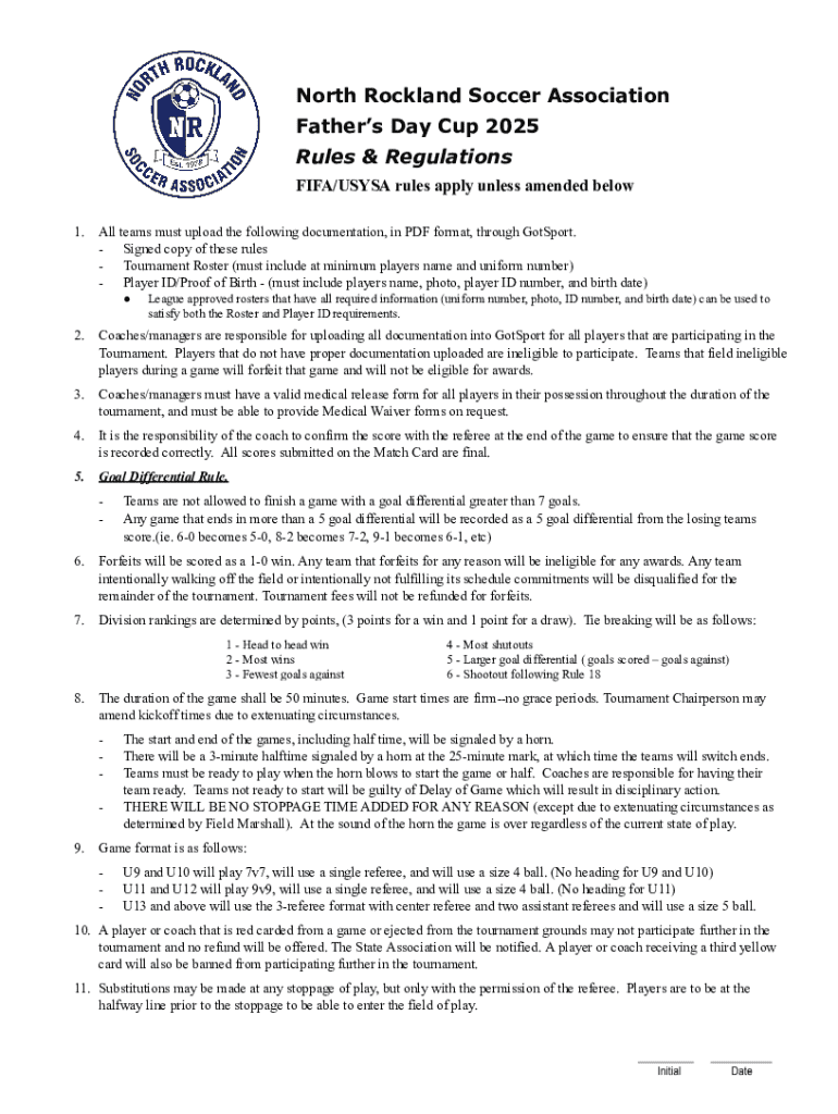 Get the free North Rockland Soccer Association Father's Day Cup 2025 Rules & Regulations