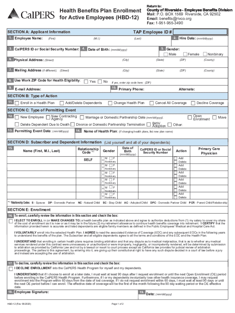 Get the free Health Benefits Plan Enrollment for Active Employees (hbd-12)