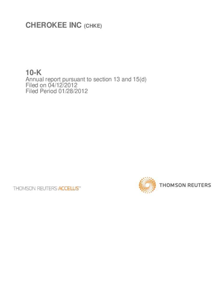 Get, Create, Make and Sign cherokee inc 10-k