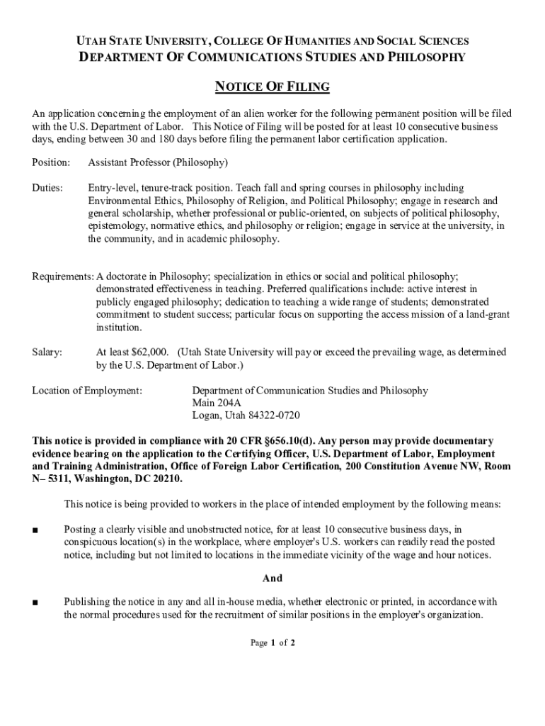 Get the free Notice of Filing - chassusu.edu - chass usu