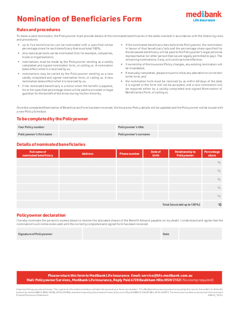 Get the free Nomination of Beneficiaries Form