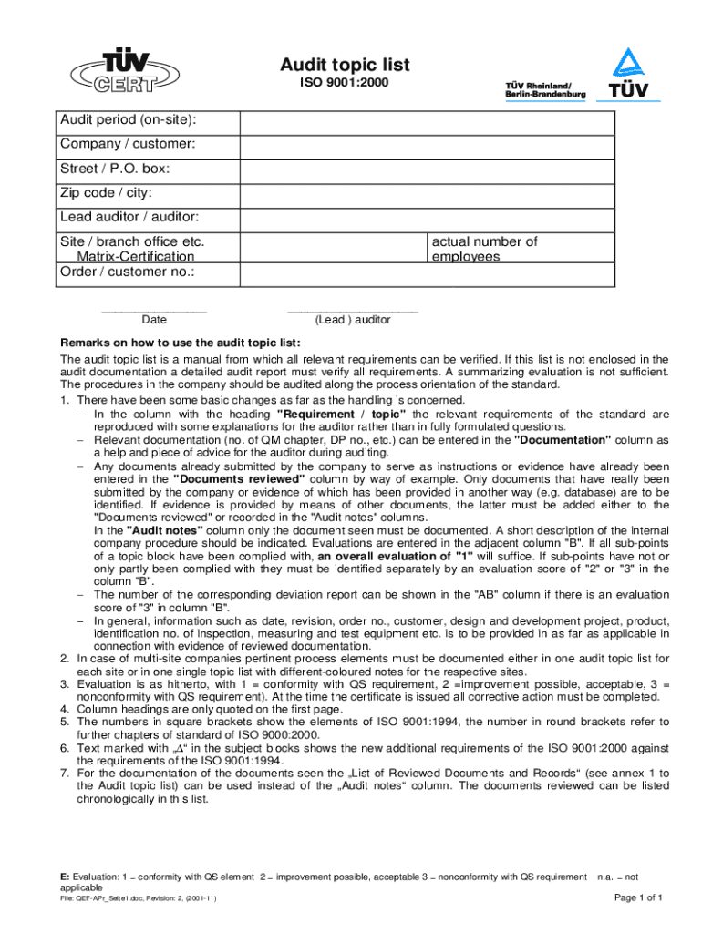 An audit checklist serves as a structured framework designed to systematically evaluate aspects of a particular process, document, or form. This tool not only helps in verifying compliance with established standards but also ensures that all critical components are completed. Properly utilizing an audit checklist is essential in form completion as it enhances accuracy and mitigates risks of oversight.