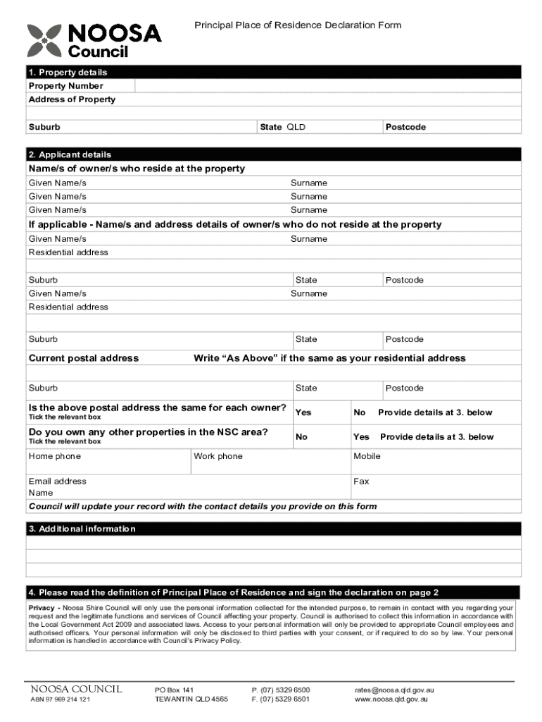 Get the free Principal Place of Residence Declaration Form