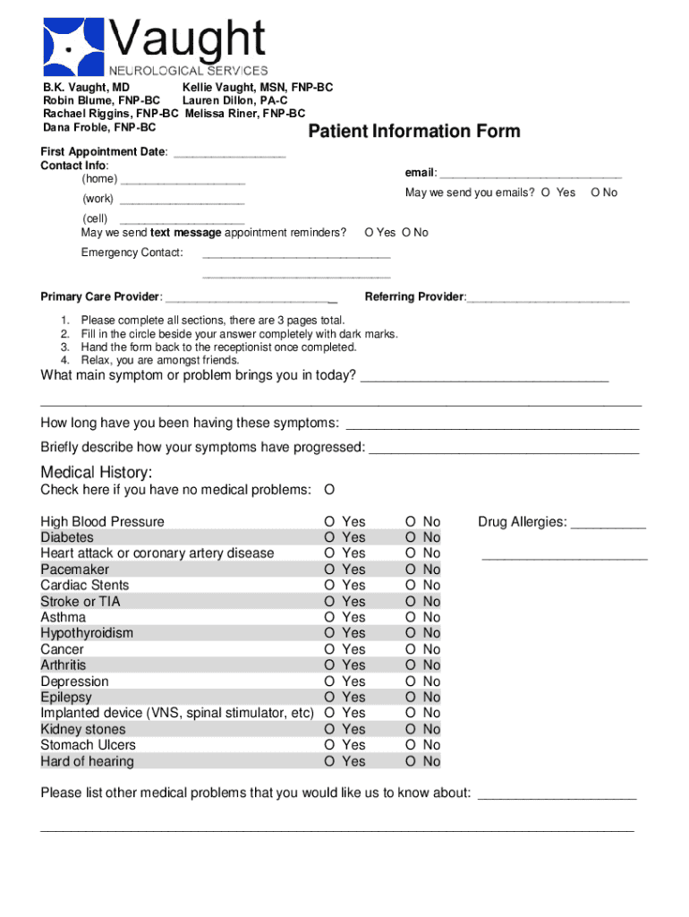 Get the free Patient Information Form