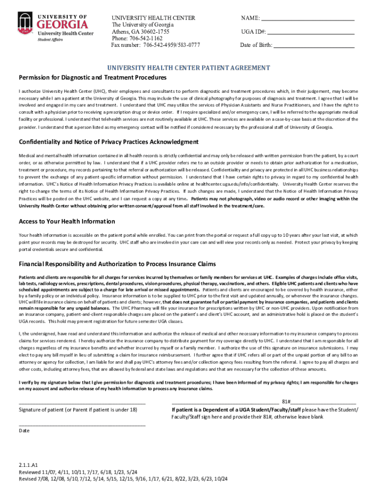 Get the free University Health Center Patient Agreement
