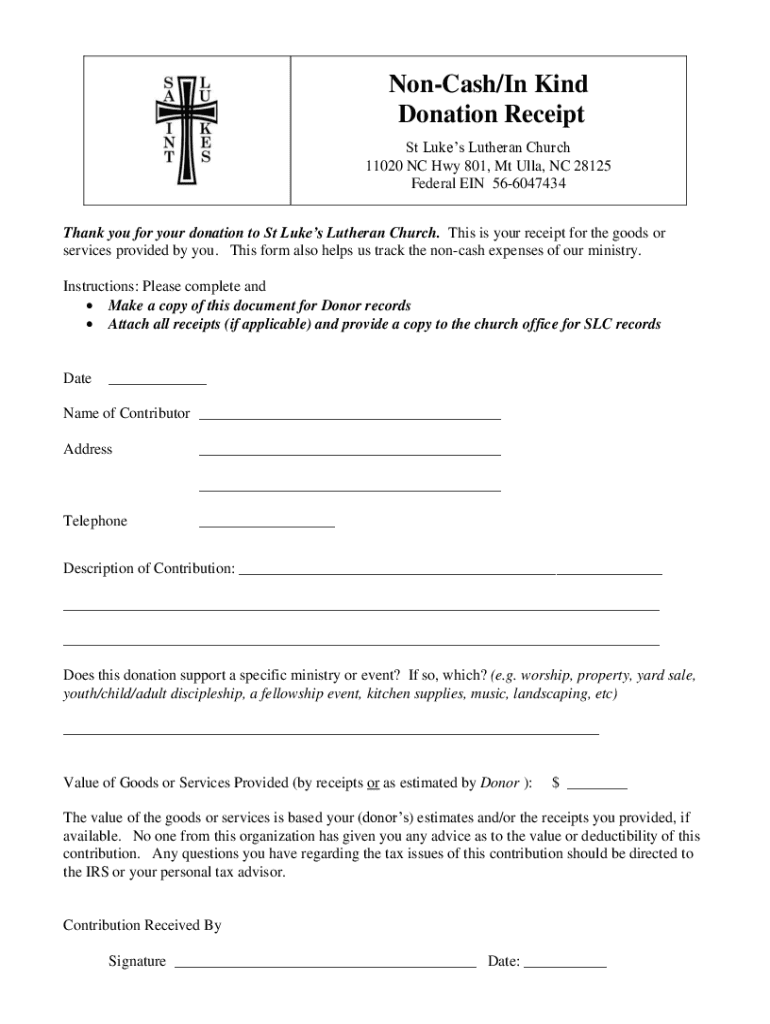 Mastering the Non-Cash In-Kind Donation Receipt Form