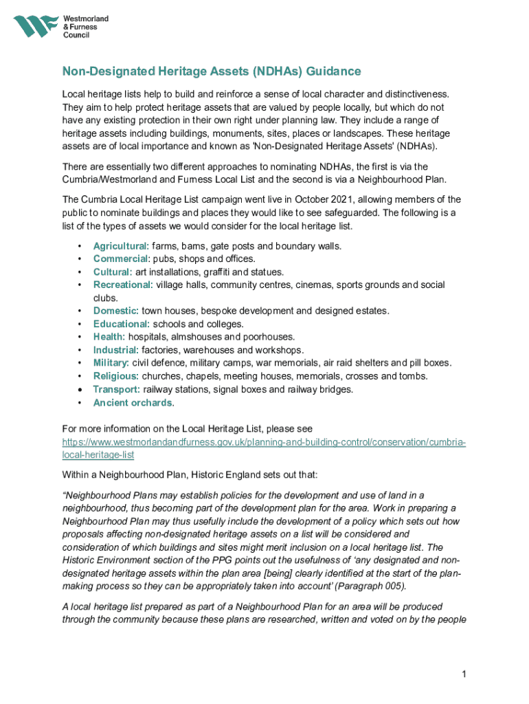 Get the free Non-designated Heritage Assets (ndhas) Guidance