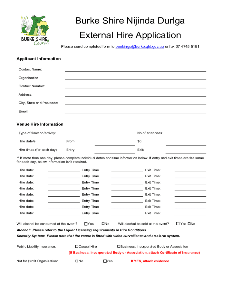 Get the free Burke Shire Nijinda Durlga External Hire Application