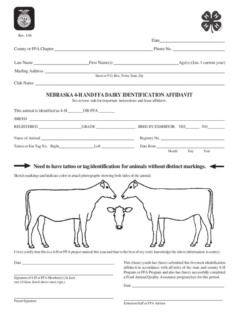 Get the free Nebraska 4-h and Ffa Dairy Identification Affidavit - extension unl