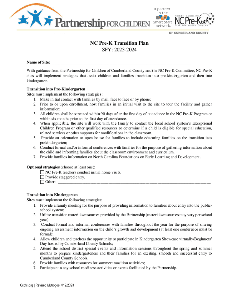Get the free Nc Pre-k Transition Plan