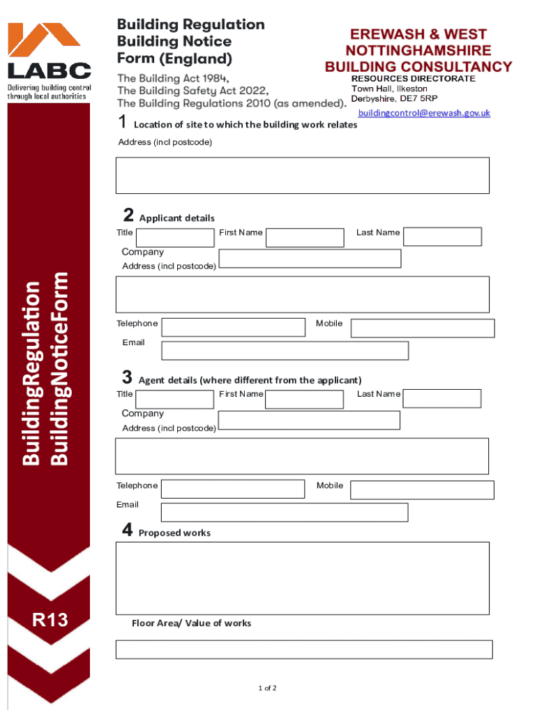 The building notice form is a simplified application for building projects that require relatively low-risk work. This form allows builders to start construction without the need for detailed plans, streamlining the process where appropriate. It’s particularly useful for small extensions, loft conversions, and internal alterations.