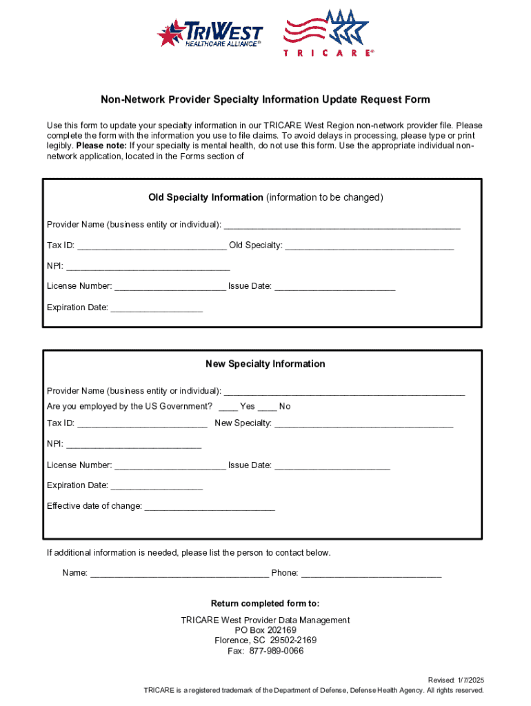 Filling out the non-network provider specialty information form accurately is essential for ensuring timely processing and approval. The form often has multiple sections, each requiring specific information.